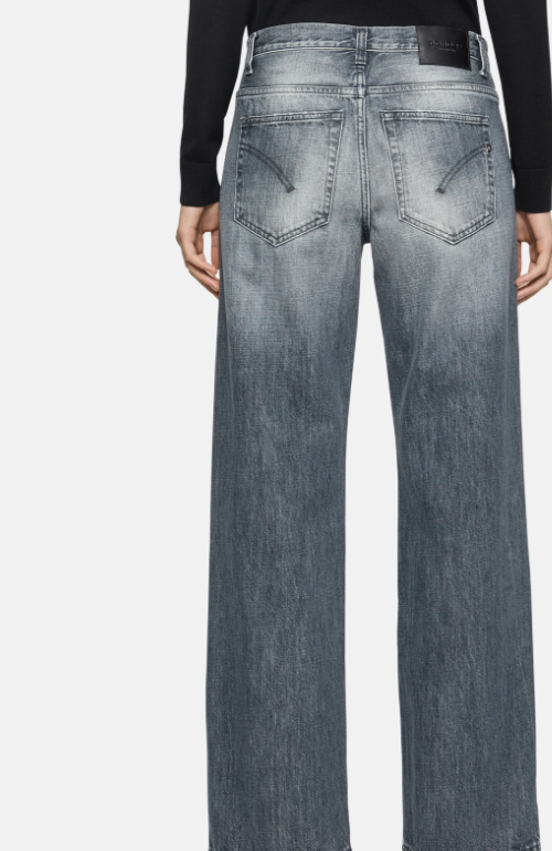 Jacklyn wide-leg five-pocket palazzo jeans, low waist. Clean medium wash. Dondup logo. Made in Italy