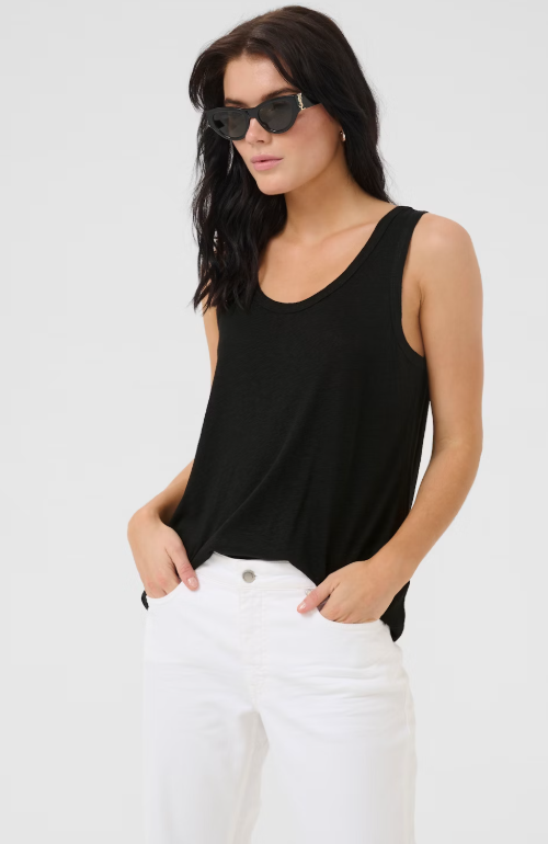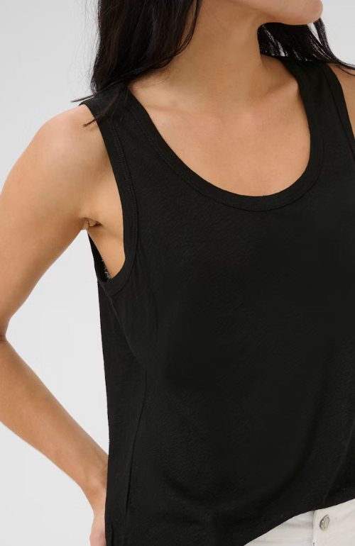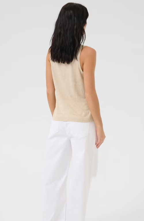 Crafted from a luxurious blend of linen and viscose, this sleeveless knitted top boasts a regular fit and hip length design. Perfectly paired with jeans or a skirt for a chic ensemble.