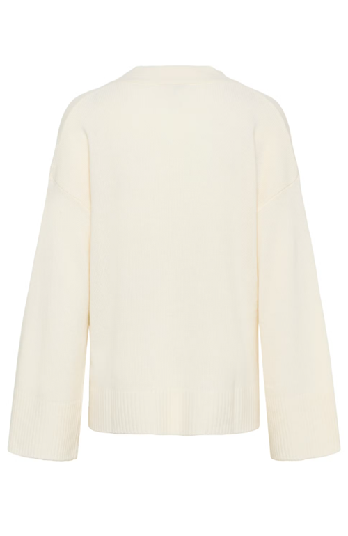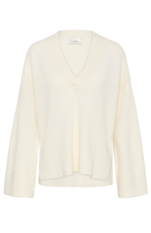This V-neck sweater offers a relaxed fit and modern silhouette, featuring wide sleeves and a ribbed hem. Comfortable and versatile, it’s ideal for layering and perfect for both casual and workwear looks