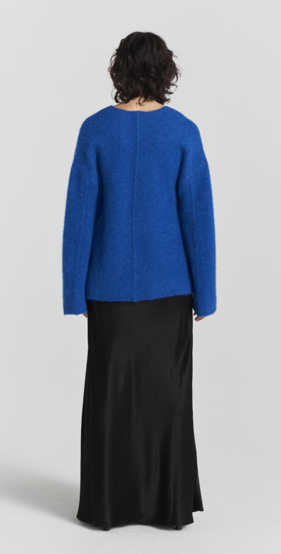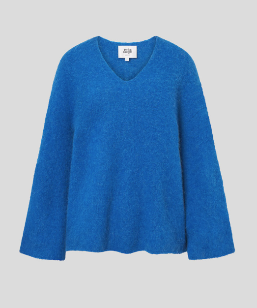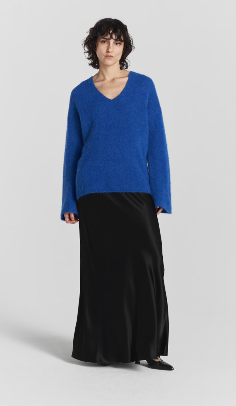 nitted from a luxurious baby alpaca blend, it features a v-neck, wide sleeves, and a loose fit.